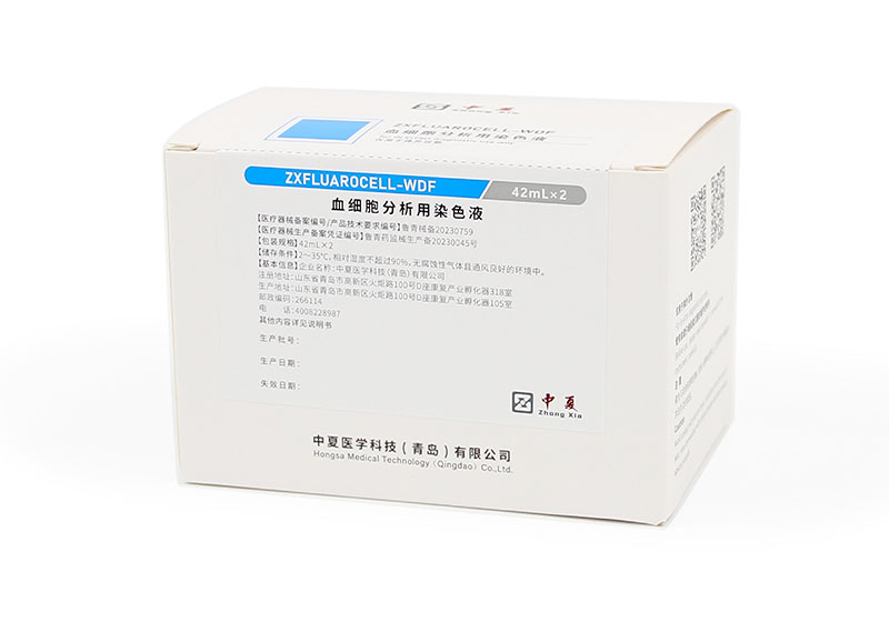 血细胞检测过程中,ZXFLUAROCELL-WDF染色液在WDF溶血剂的协助下对白细胞进行染色,并结合激光散射法及荧光染色的流式细胞技术进行DIFF通道白细胞的检测。