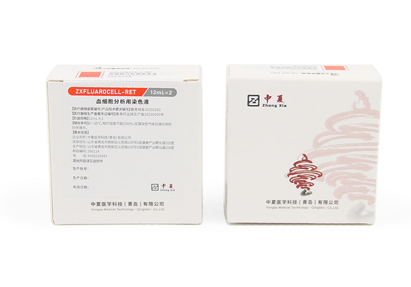 血细胞检测过程中,ZXFLUAROCELL-RET染色液在DFL稀释液协助下对网织红细胞和血小板进行染色,并结合激光散射法及荧光染色的流式细胞技术进行分类计数。